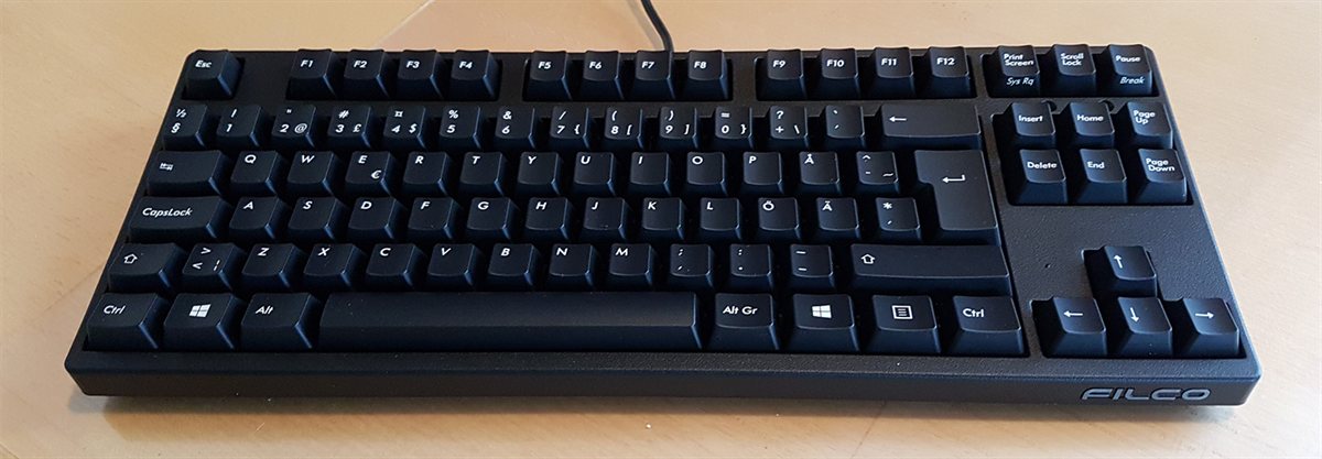 I wanted to try this one too because I read several recommendations for "tenkeyless" keyboards (standard keyboard layout but without the numeric key pad). The idea is that "10 finger typers" like myself use the numeric key pad very seldom - so why waste the desktop space.